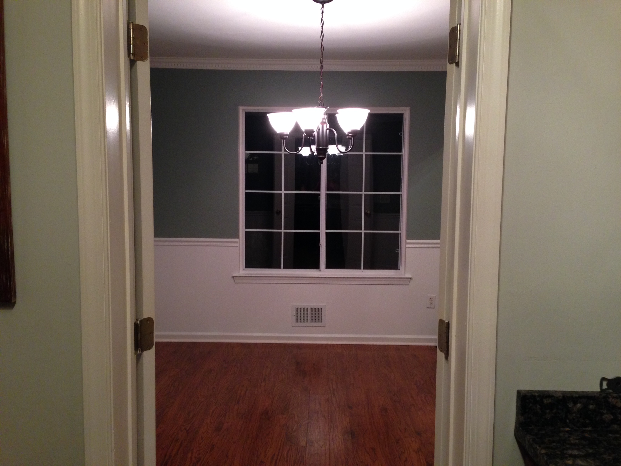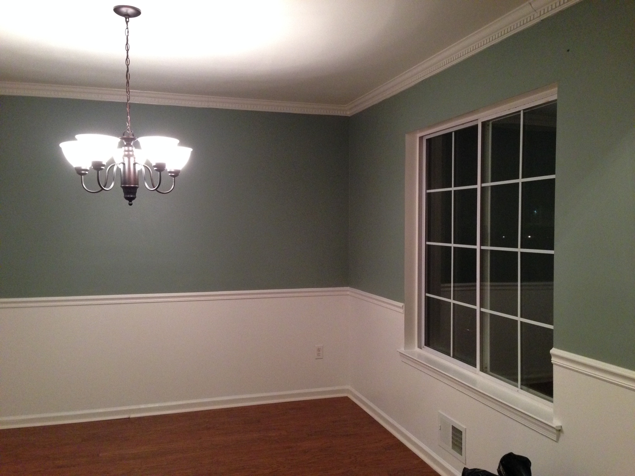 - The chair rail and crown molding were already installed