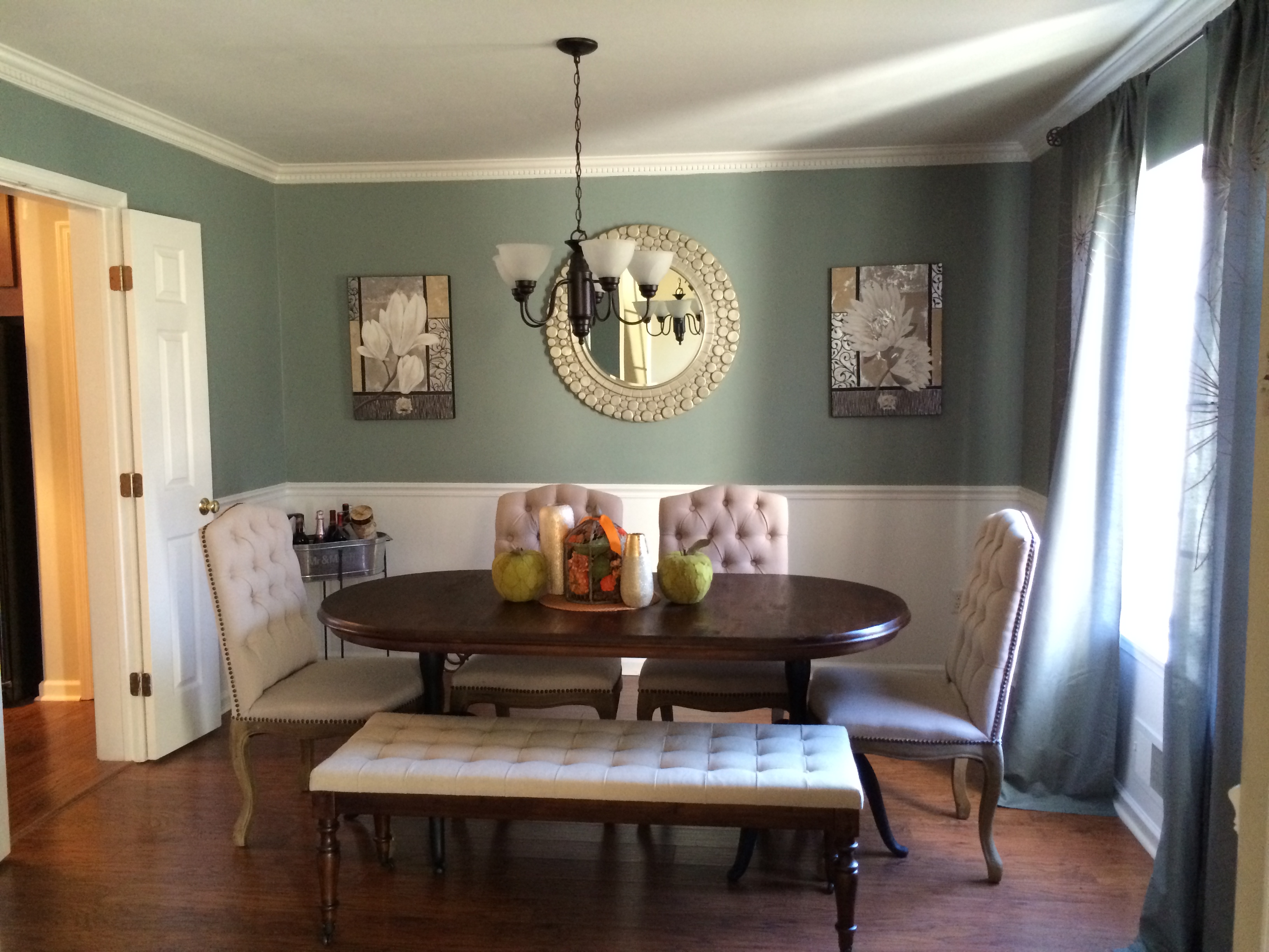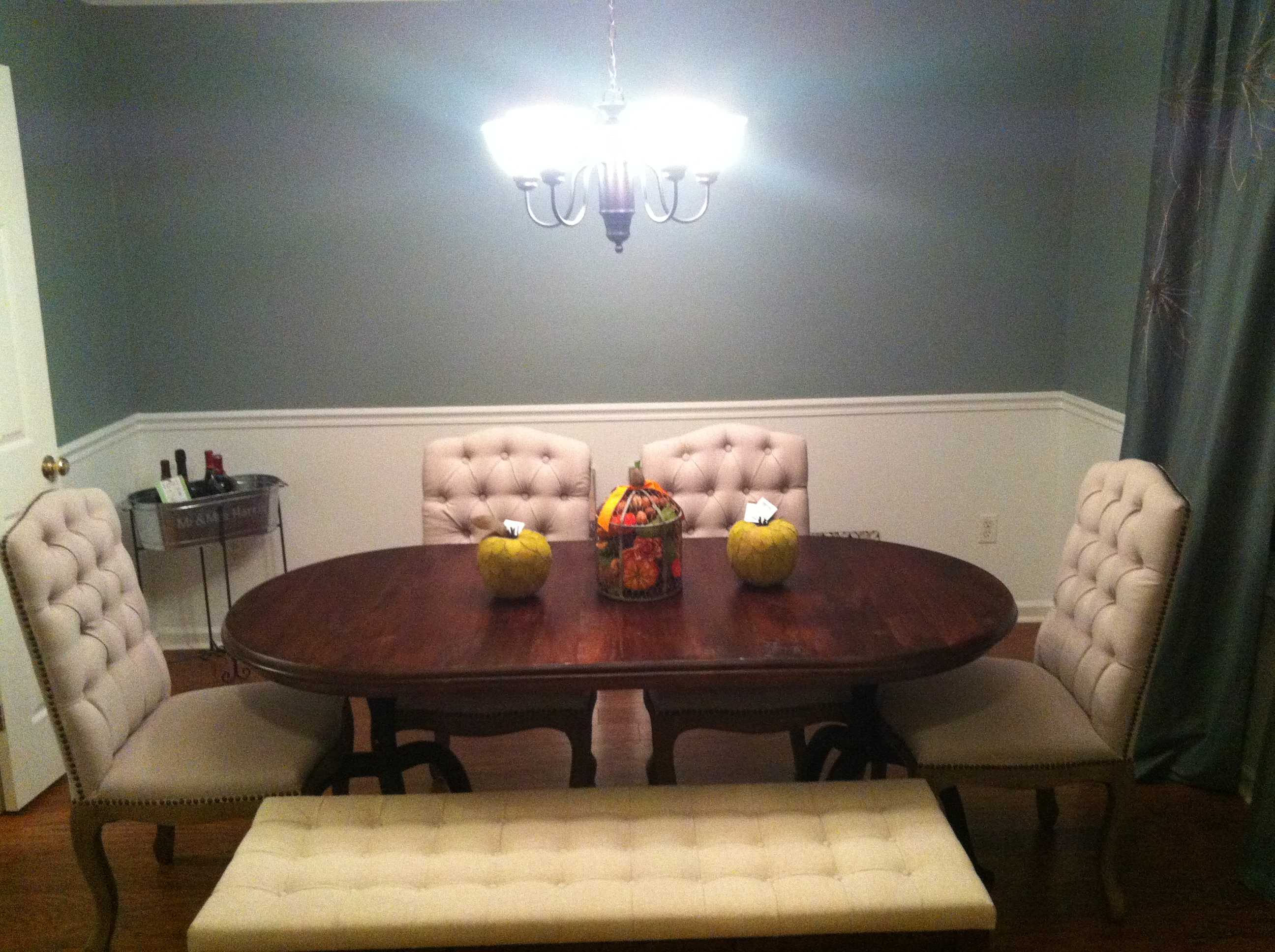 It’s official…my favorite room makeover in our house is our dining room! I am in absolute love with the color I chose (click here for the post discussing my inspiration and paint selection). Picking that was easy. Selecting our table/chairs, however, was a different story.