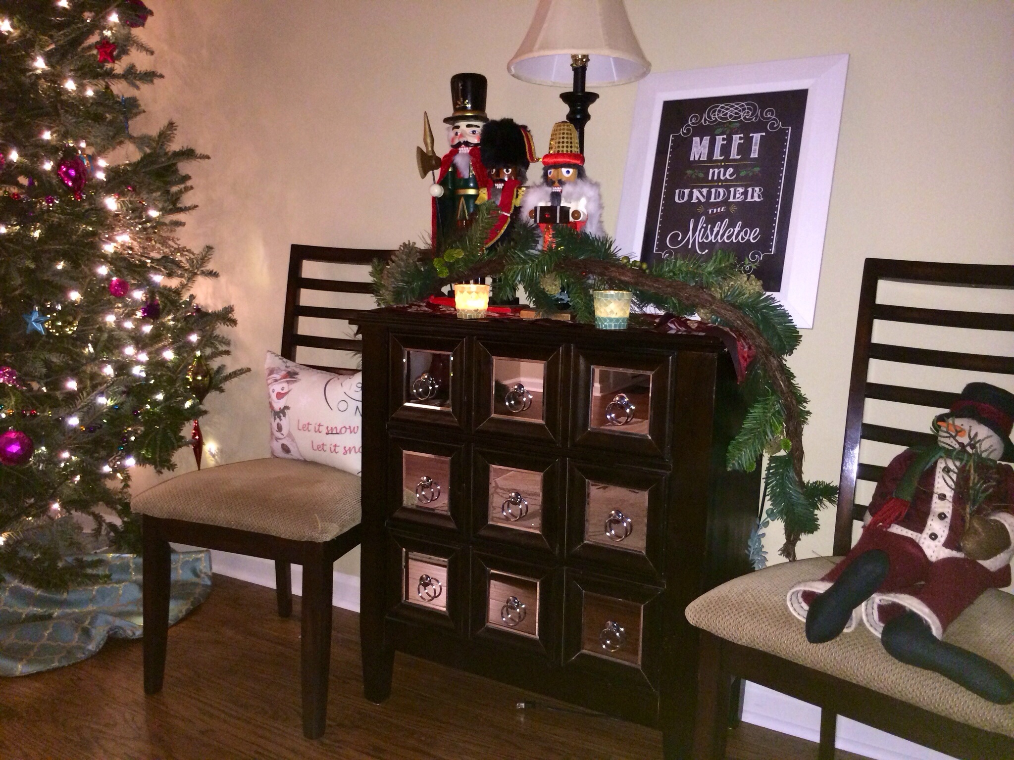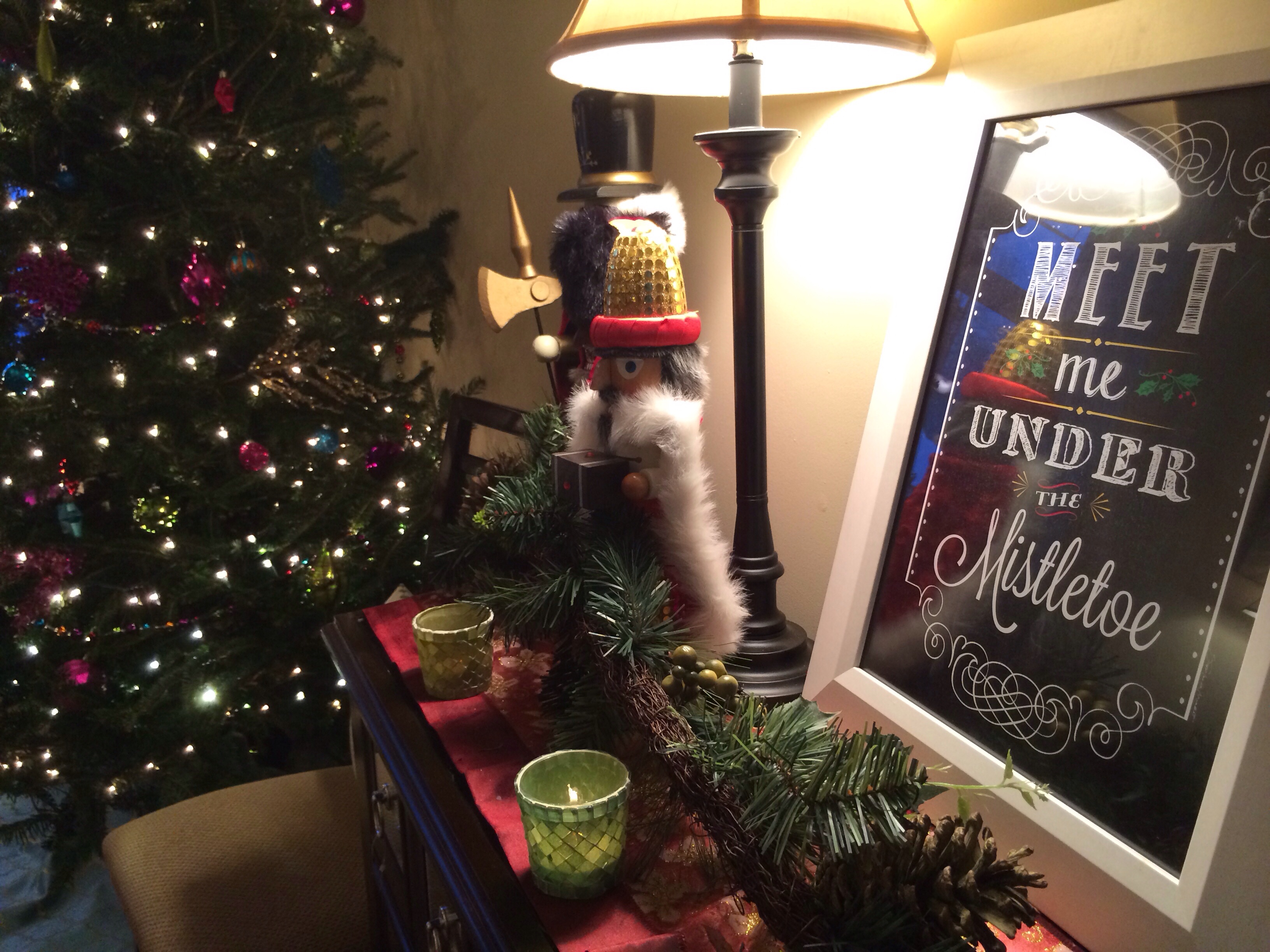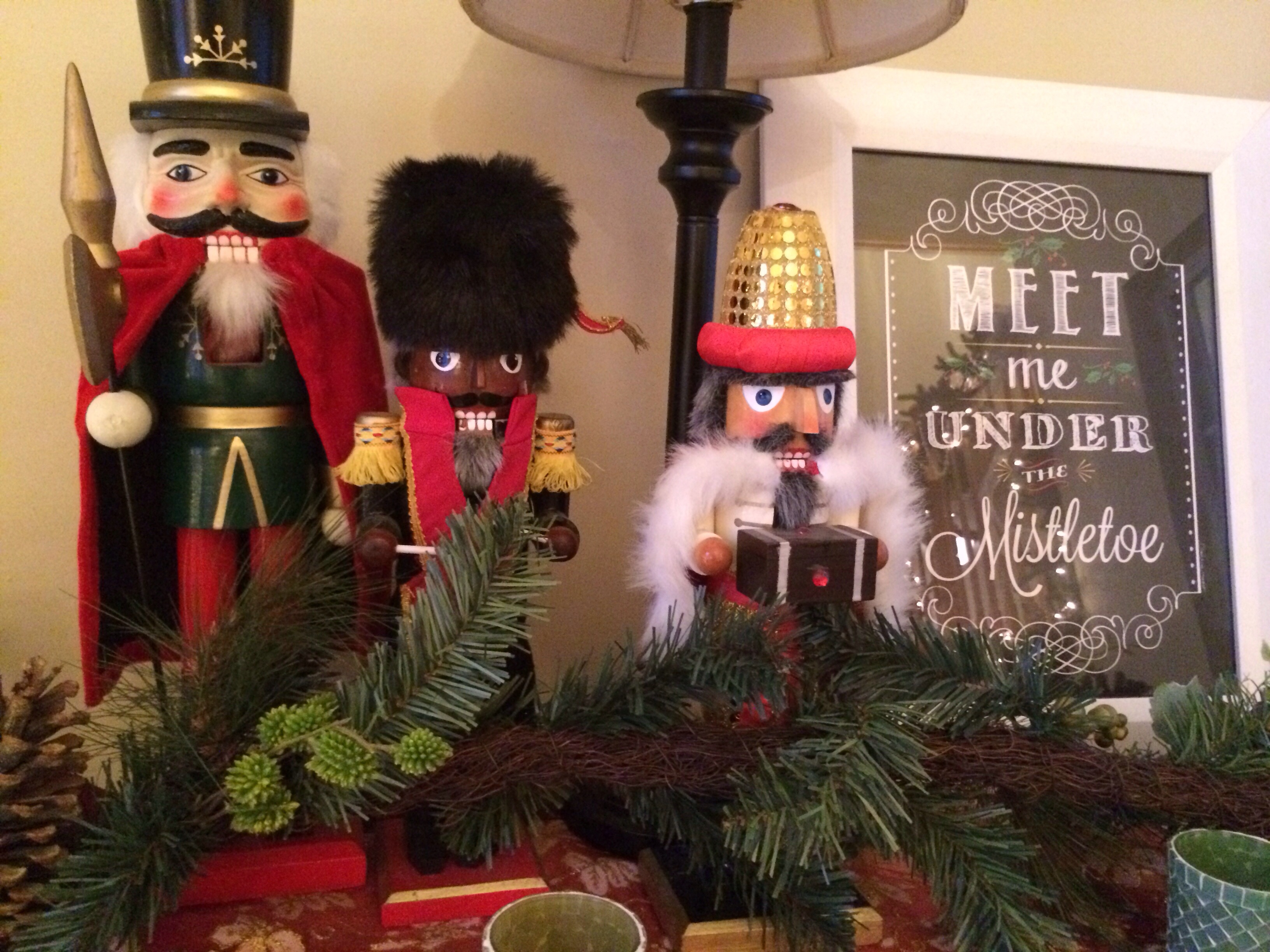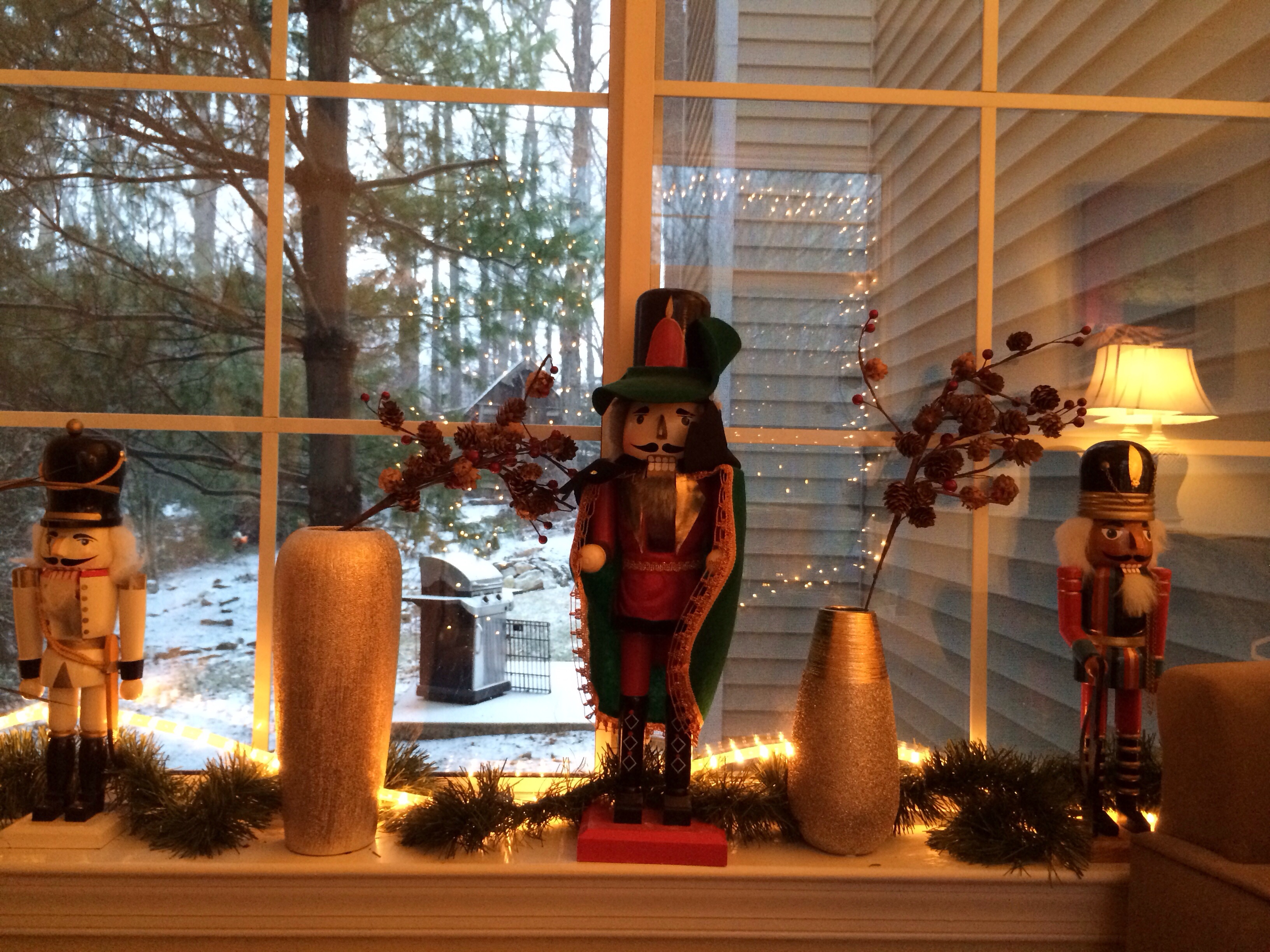 The nutcrackers continue along our back window and keep watch over the room at night.